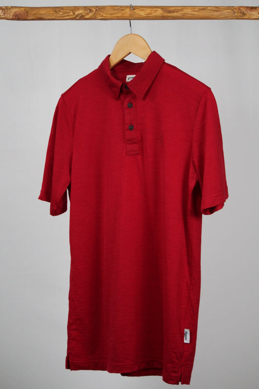 The men's polo is proudly Made in Canada using 100% Australian Merino wool. The entire wool production process, from farm to textile manufacturing, is RWS certified.
